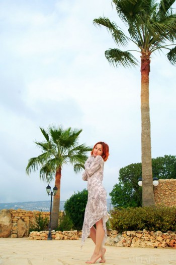 Going outside for a walk, this thin, sexy redhead with short hair took her dress off and had a good time soaking in the warm weather and cool breeze completely naked.