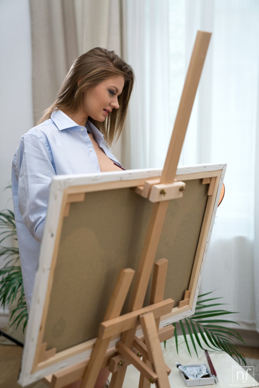 This horny painter hired a model to pose nude for her. After the painting was done, the artist was so turned on she got naked and climbed into bed with the girl using her tongue and toys to make her cum hard.